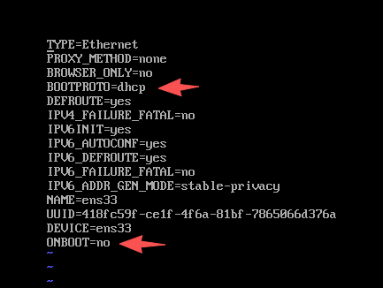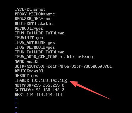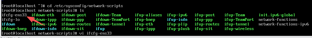 1 | vi /etc/sysconfig/network-scripts/ifcfg-ens33 |