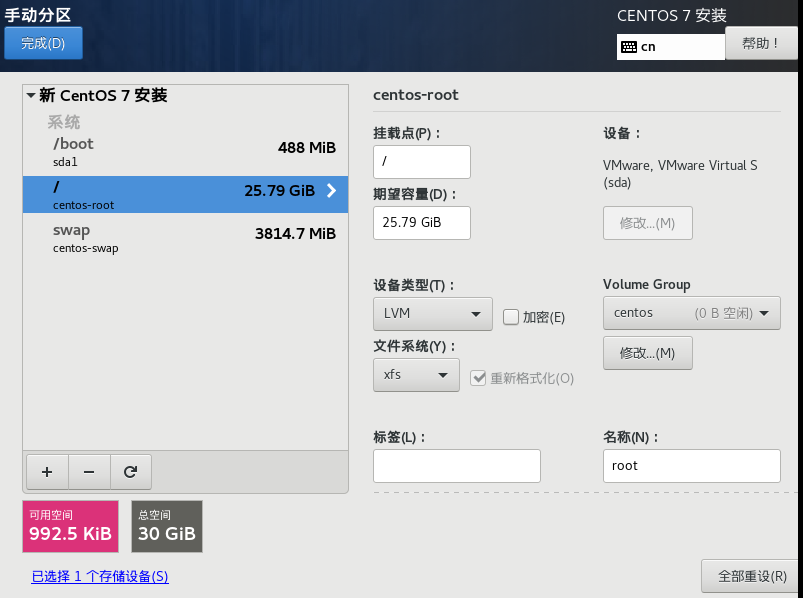 ③添加/分区,该分区用作操作系统的文件系统,剩余空间都分配给根目录。