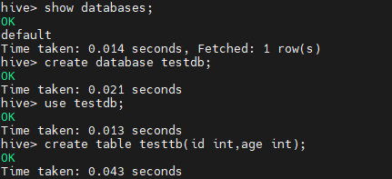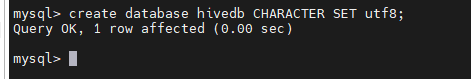 # 在mysql中创建hive使用的数据库 create database hivedb CHARACTER SET utf8;